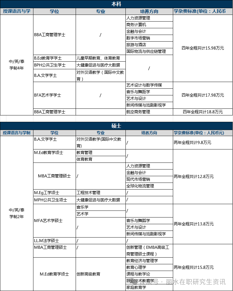 注:學籍注冊后,學生因任何原因自行退出學習,或因違紀而被開除,不予退還學費。學雜費每年會有微調(diào),以入學當期收費標準為參考。