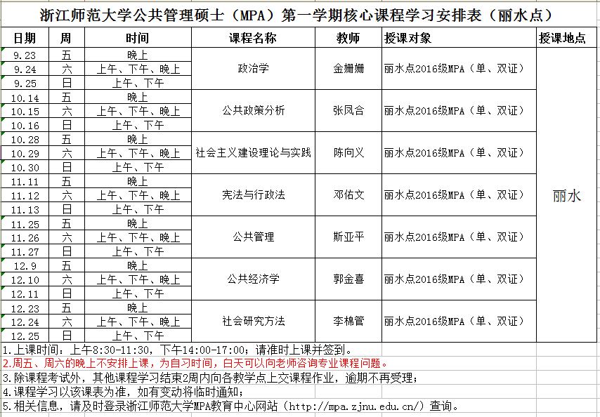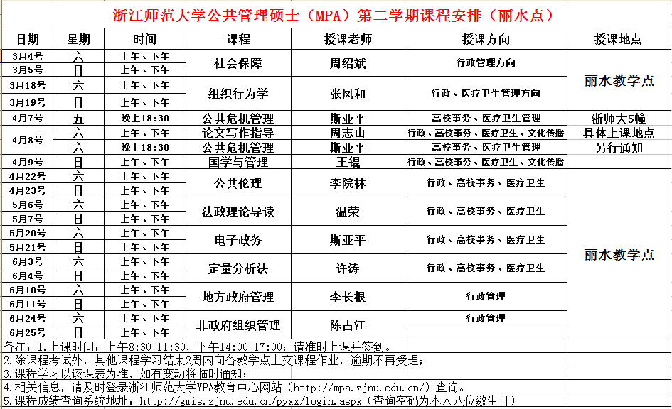 浙江師范大學(xué)MPA課程安排