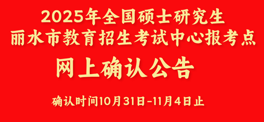 2025年全國(guó)碩士研究生招生考試麗水市教育招生考試中心報(bào)考點(diǎn)(報(bào)考點(diǎn)代碼:3309)網(wǎng)上確認(rèn)公告
