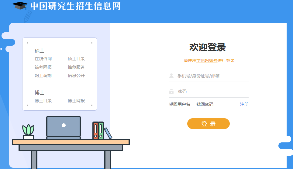 若未注冊請先在頁面右邊點擊注冊學信網賬號,若已注冊直接輸入賬號和密碼登錄即可。